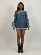 de jersey valt op maat. Het model is 175 en draagt maat M/L.