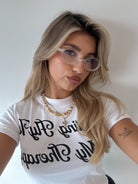 Hoe leuk zijn deze inspired it girl glasses?! Op foto 2 zie je een close-up van de zijkant met het gouden logo.