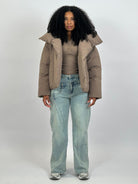 PREMIUM BIG COLLAR PUFFER TAUPE