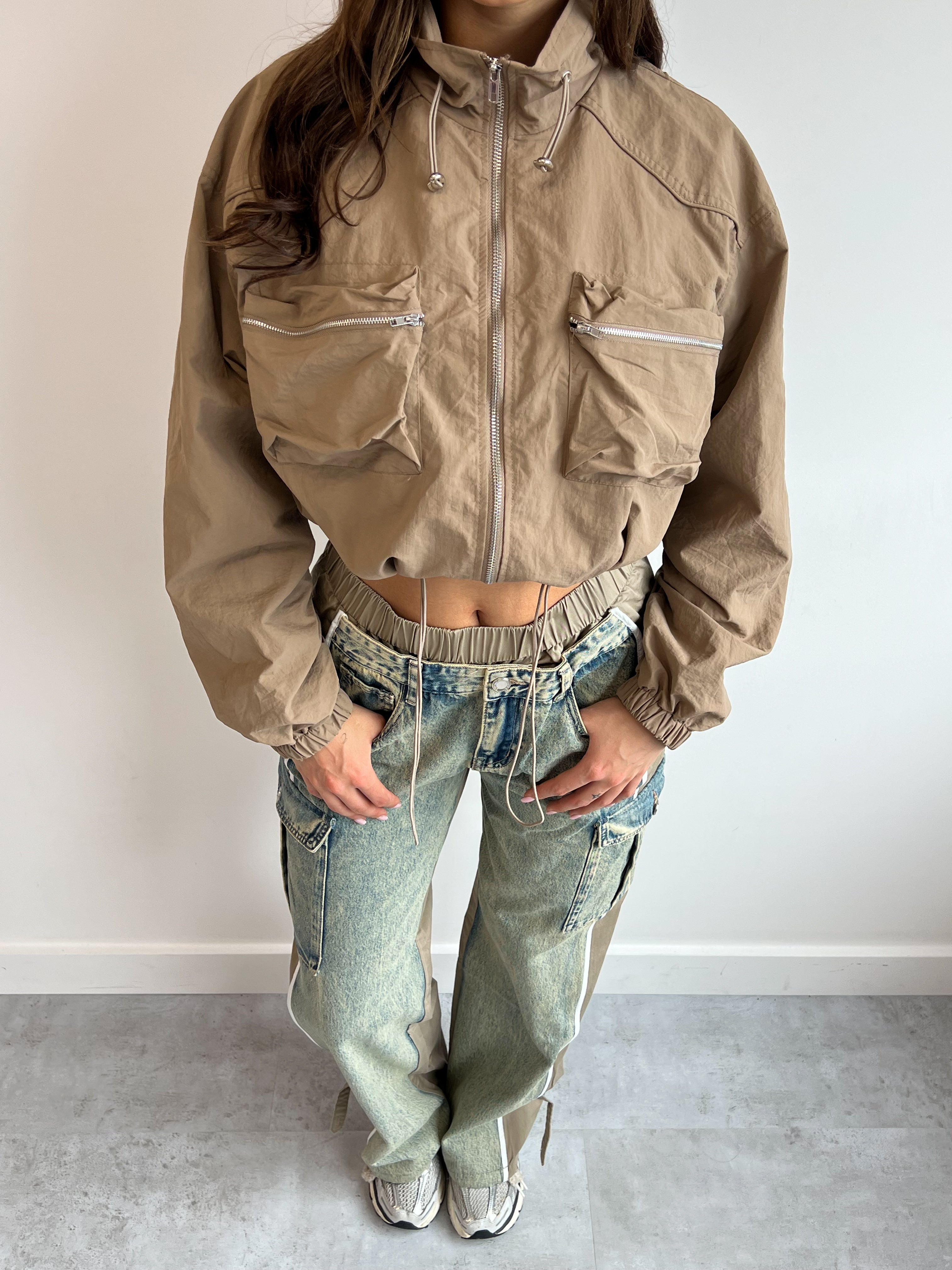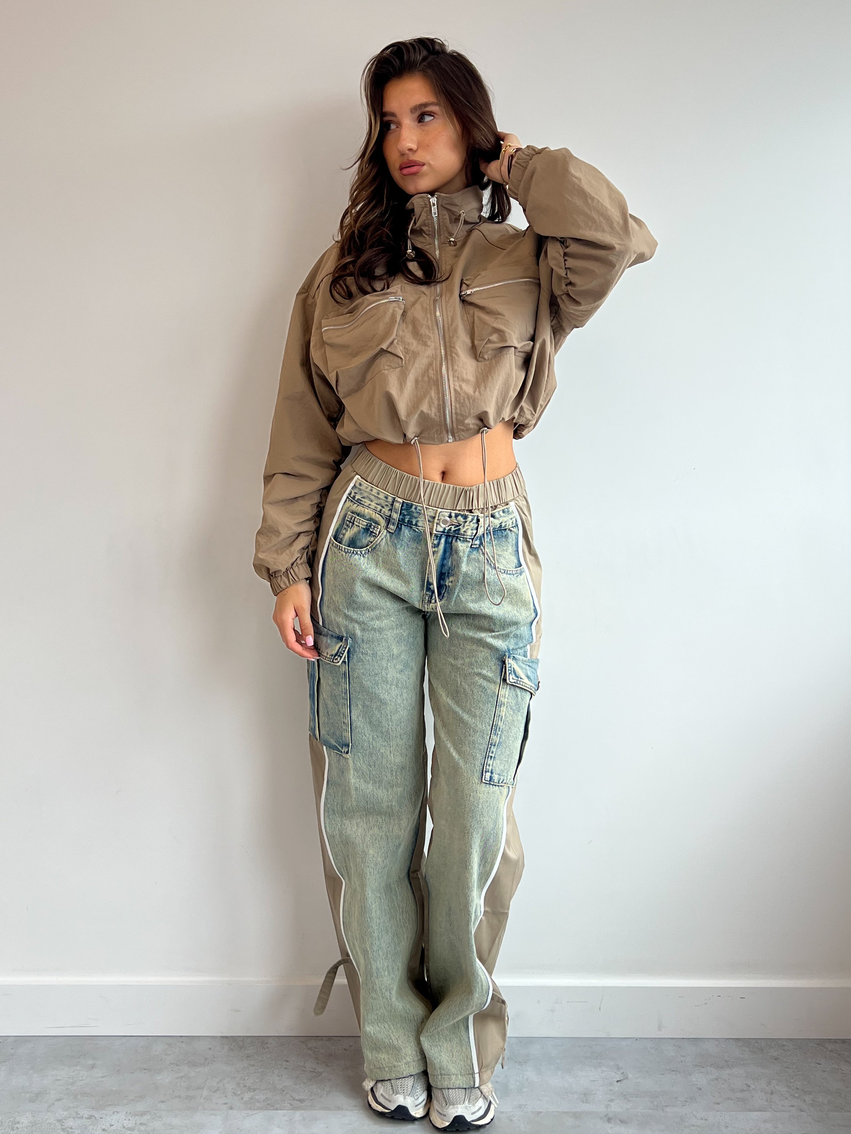 Hoe leuk is deze windbreaker jacket?! Dit is de perfecte match op onze jog denim beige.