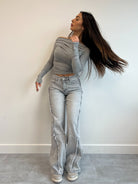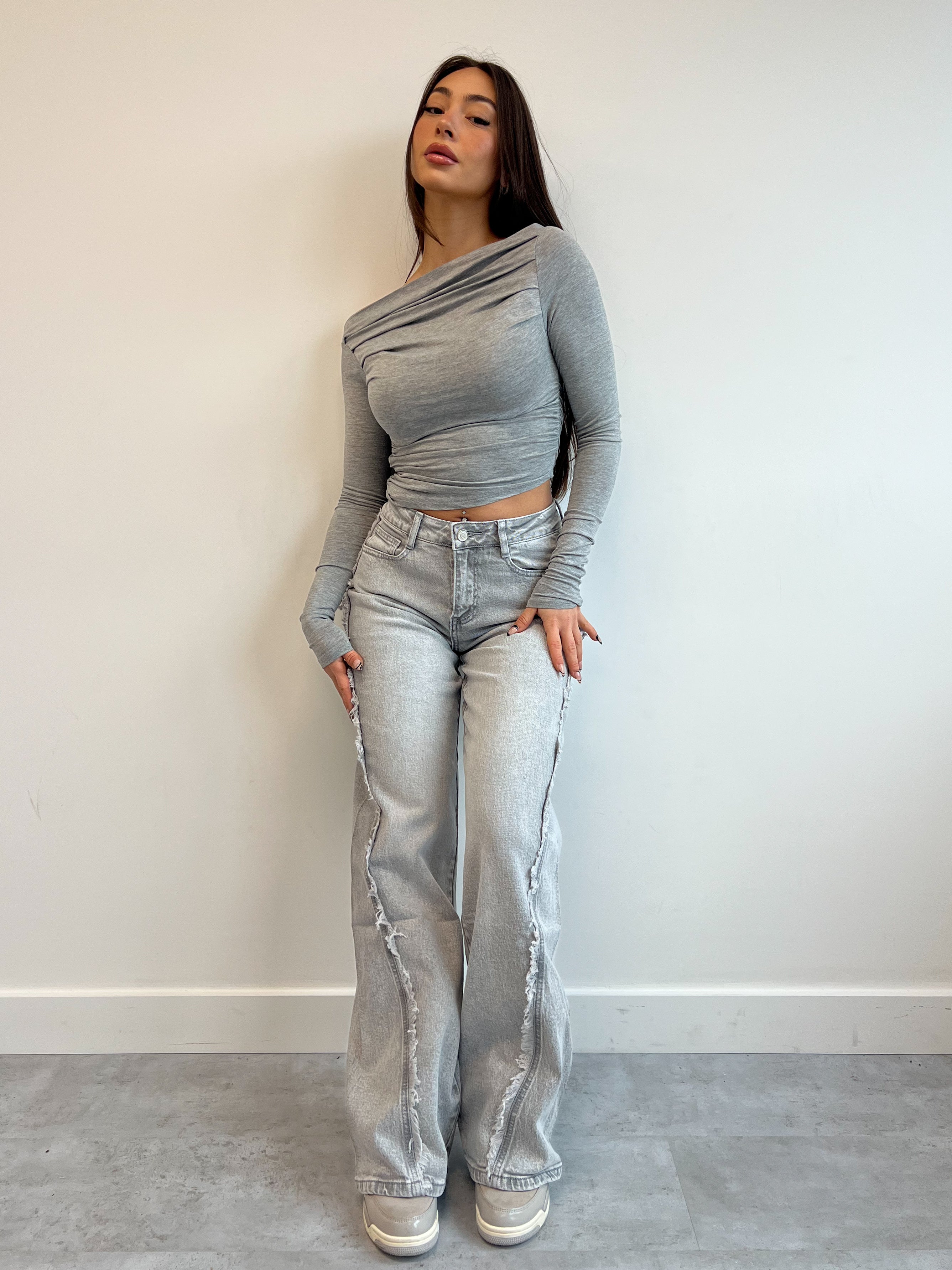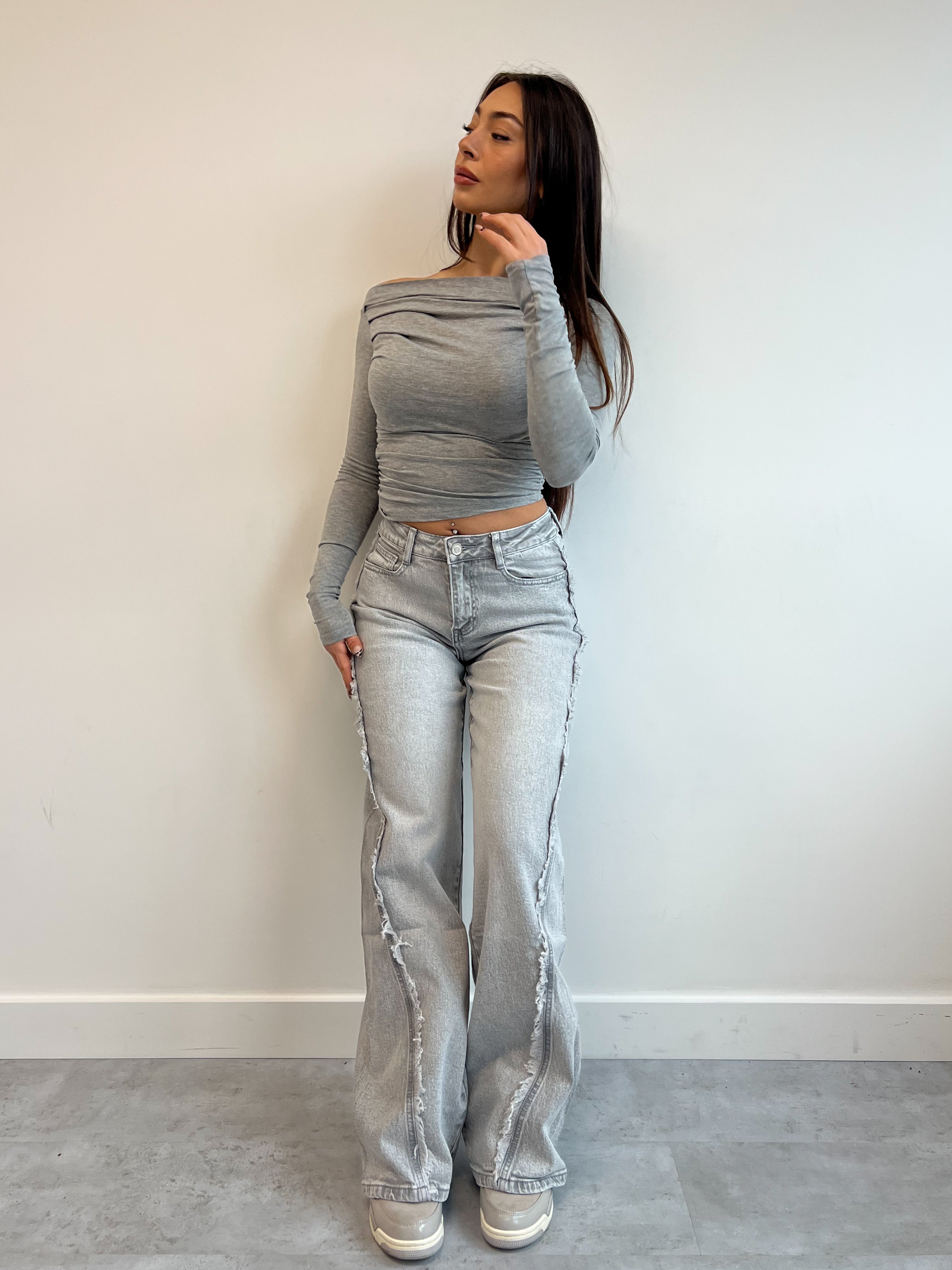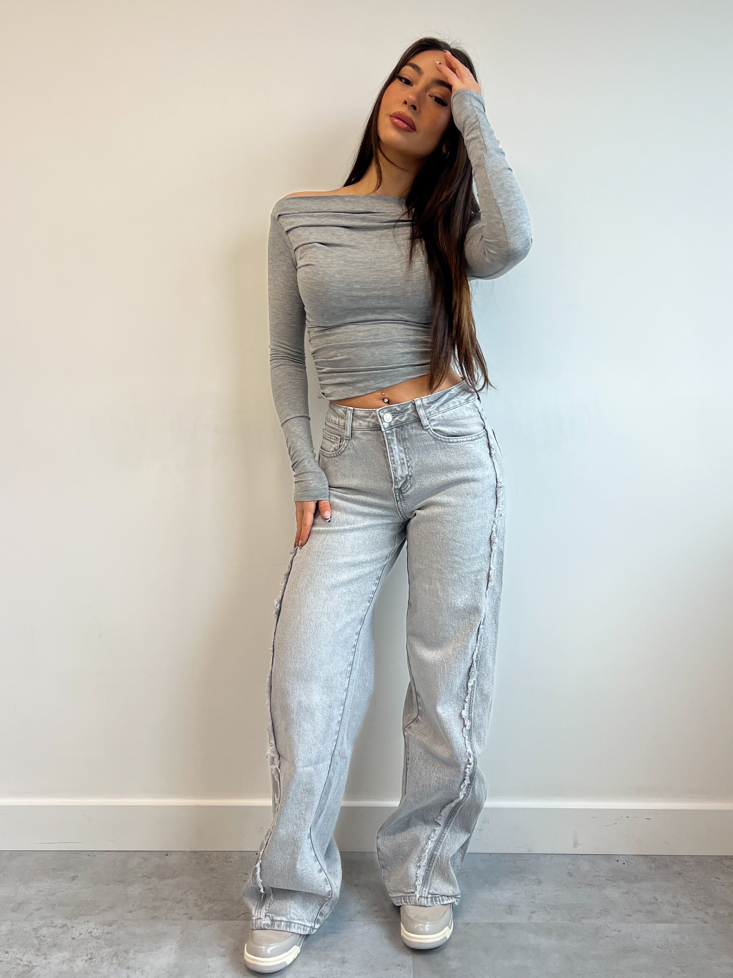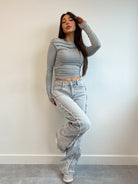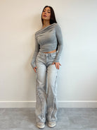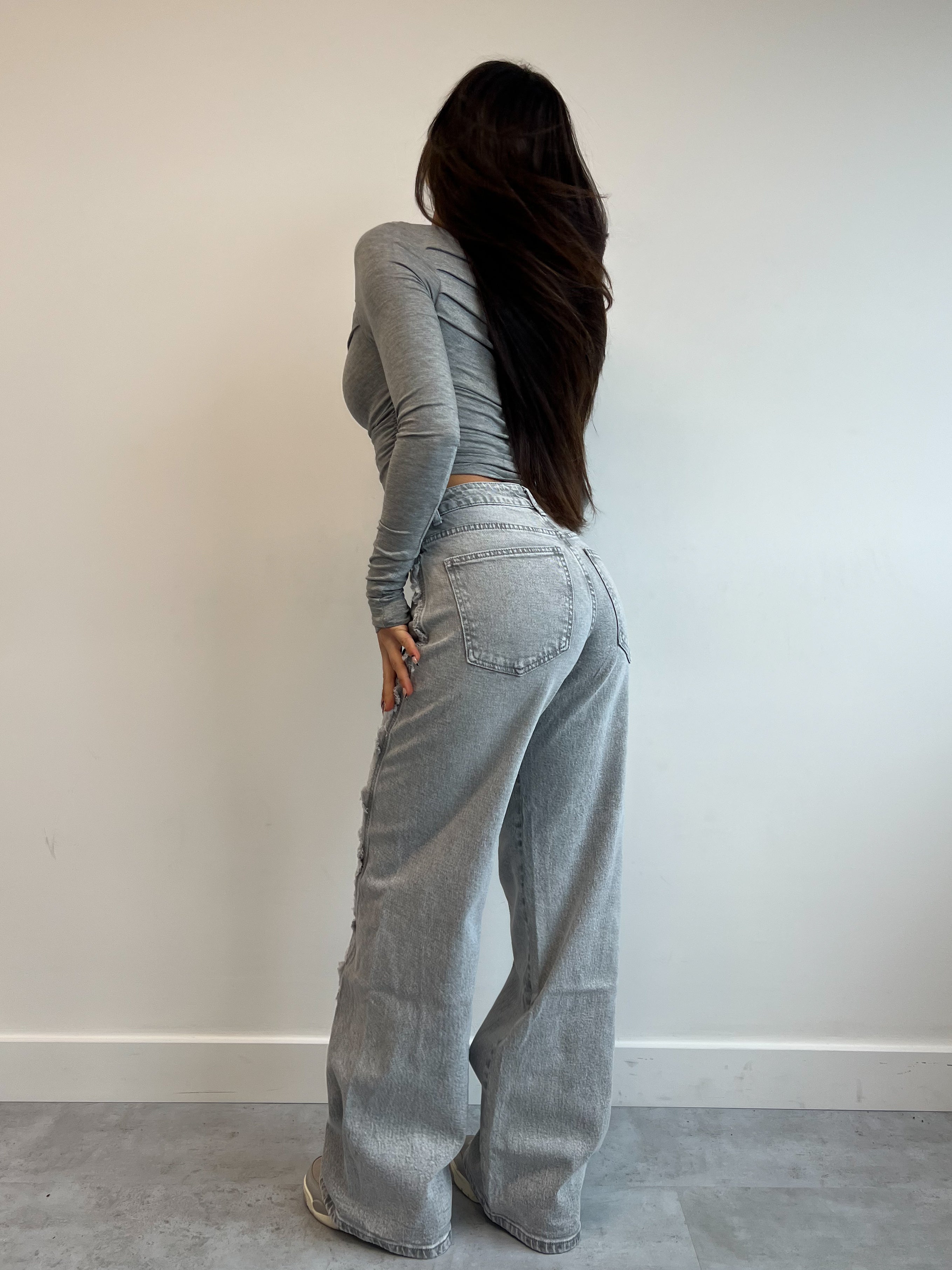 de jeans valt op maat. Het model is 163 en draagt maat XS/34.