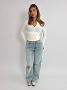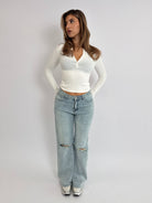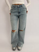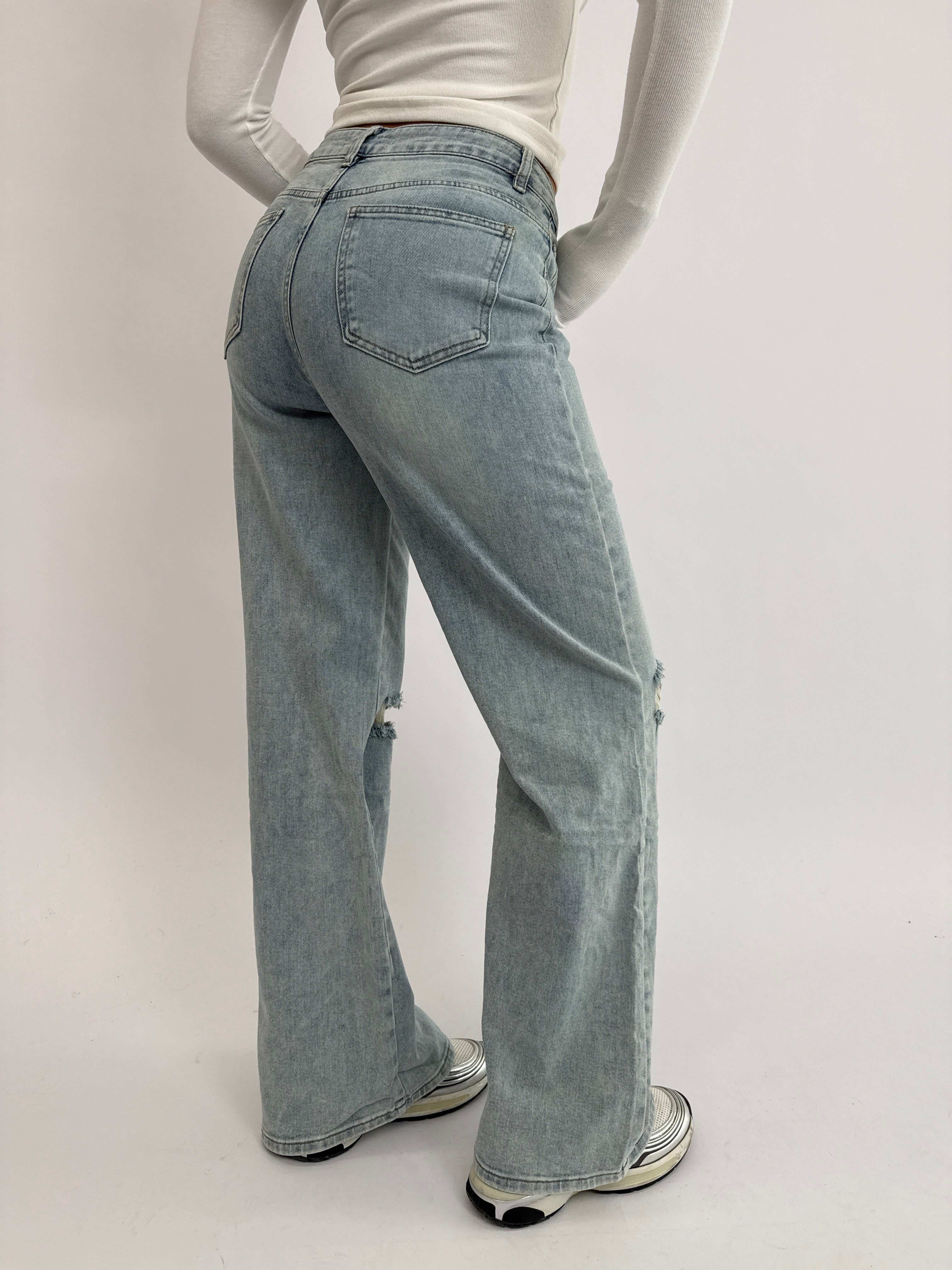 de jeans bevat stretch en valt verder op maat. Het model is 175 en draagt maat L.