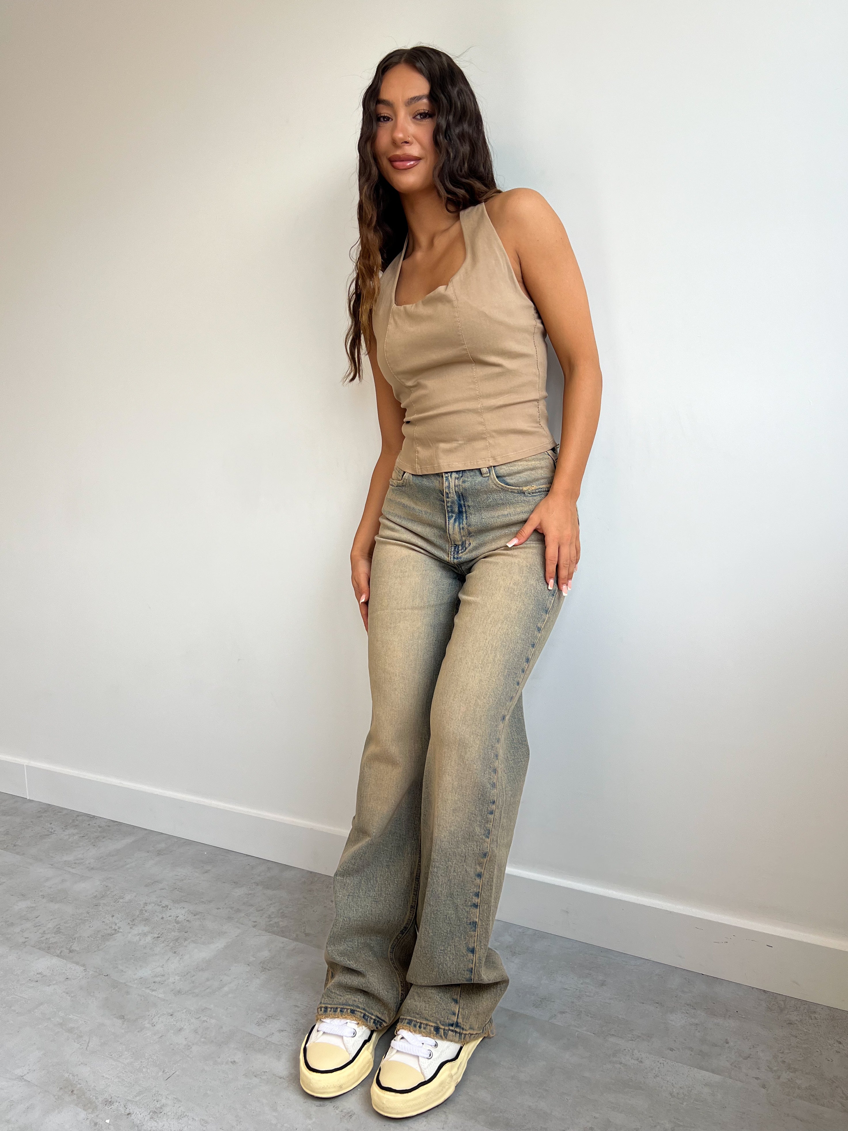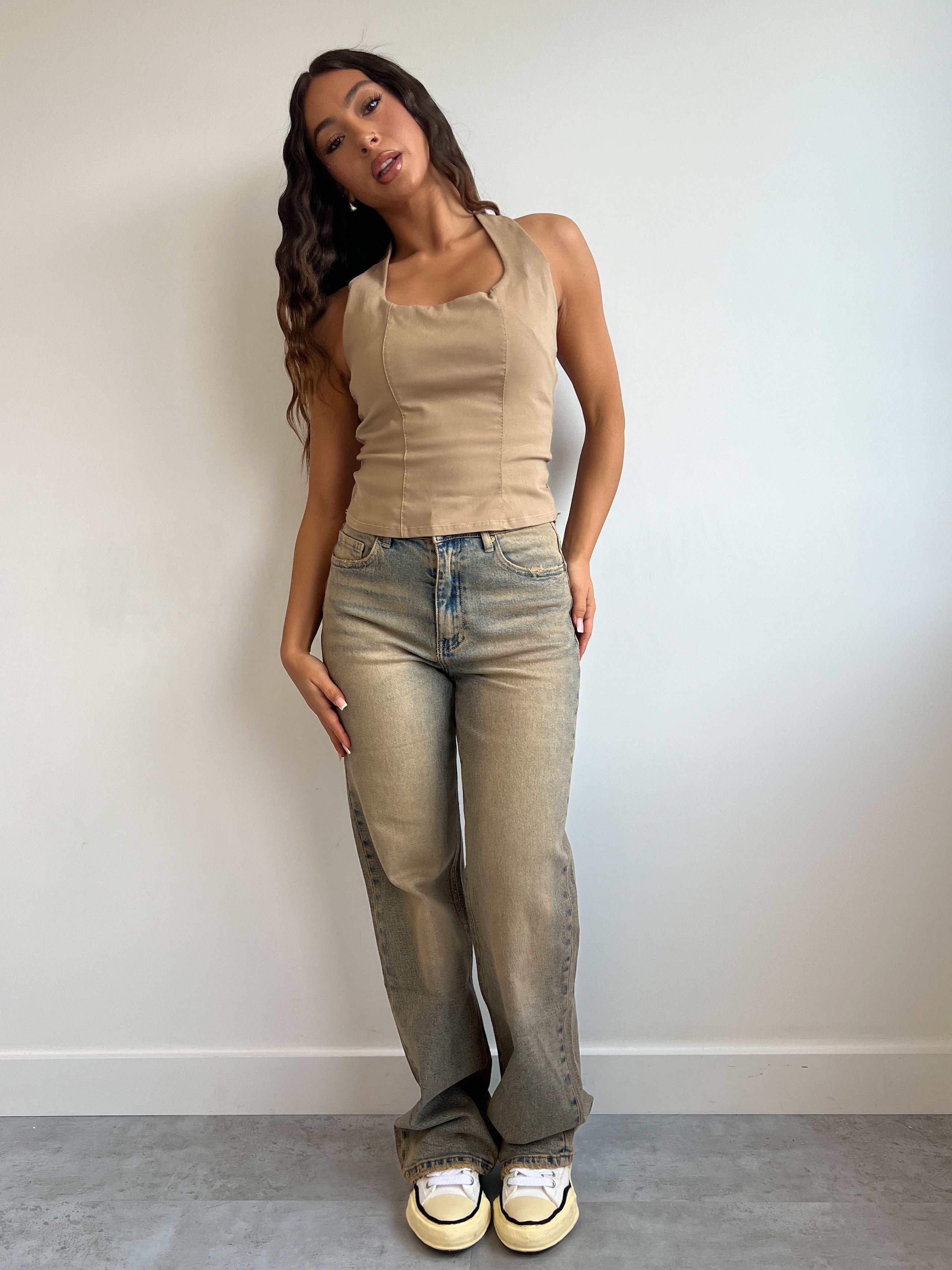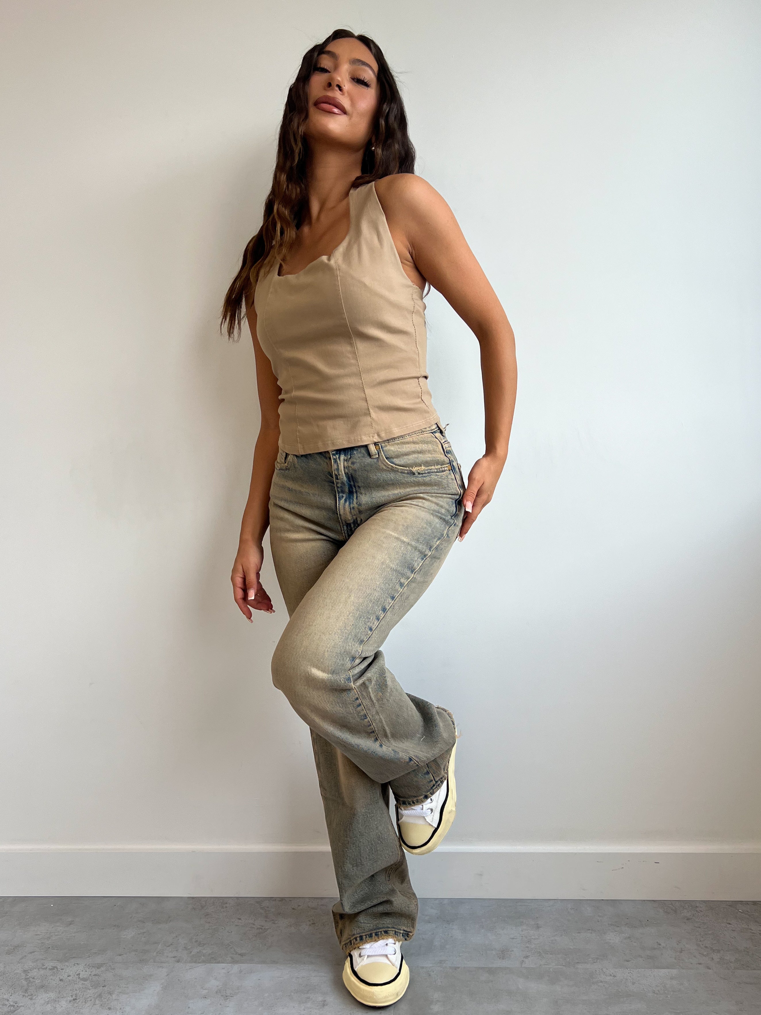 Wie schön sind diese Jeans mit Vintage-Waschung?! Wir wurden oft gefragt, ob wir die Maison-Jeans auch ohne Löcher bekommen würden und hier ist sie.