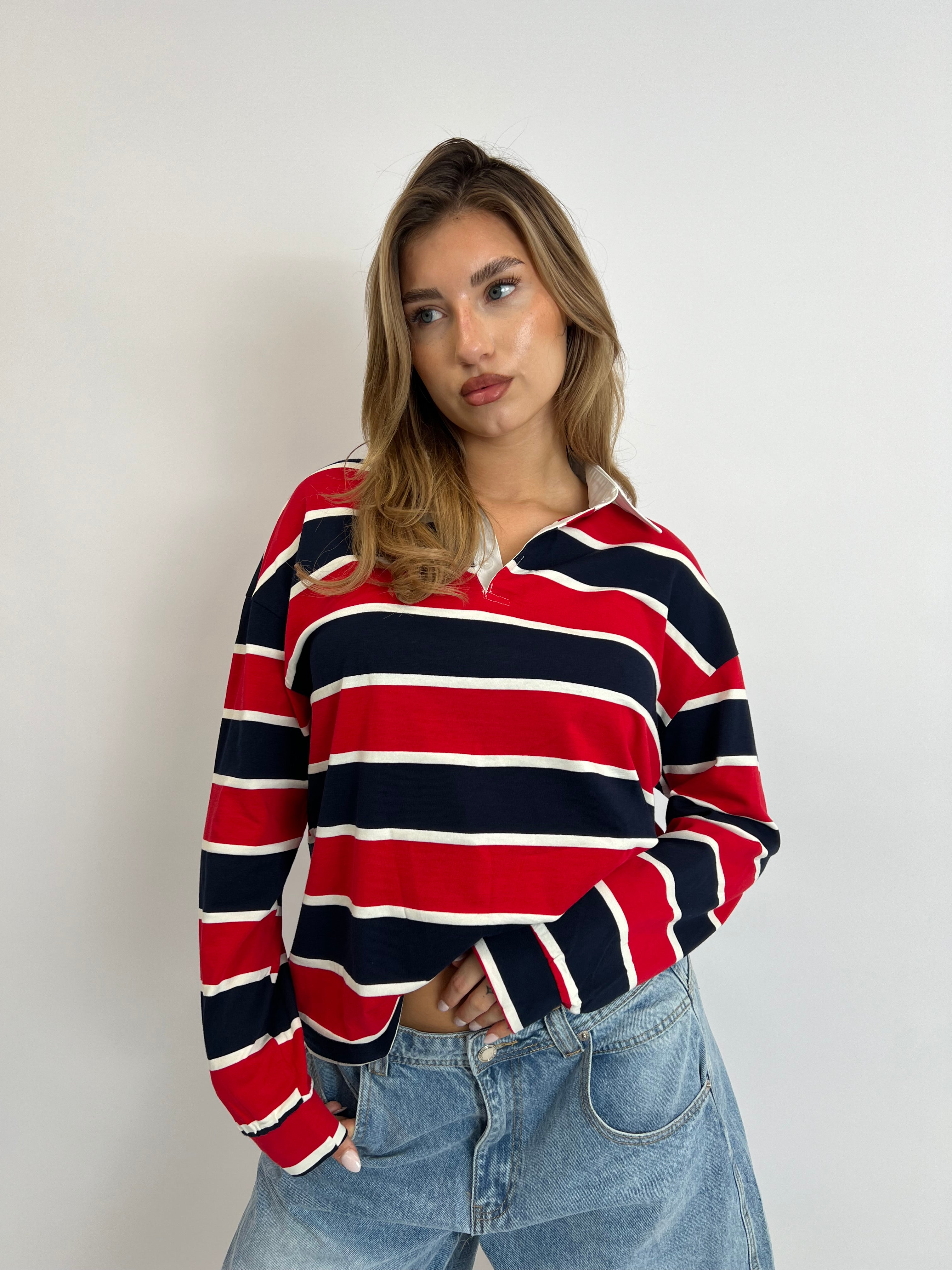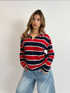 LONGSLEEVE STRIPED POLO NAVY/RED