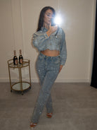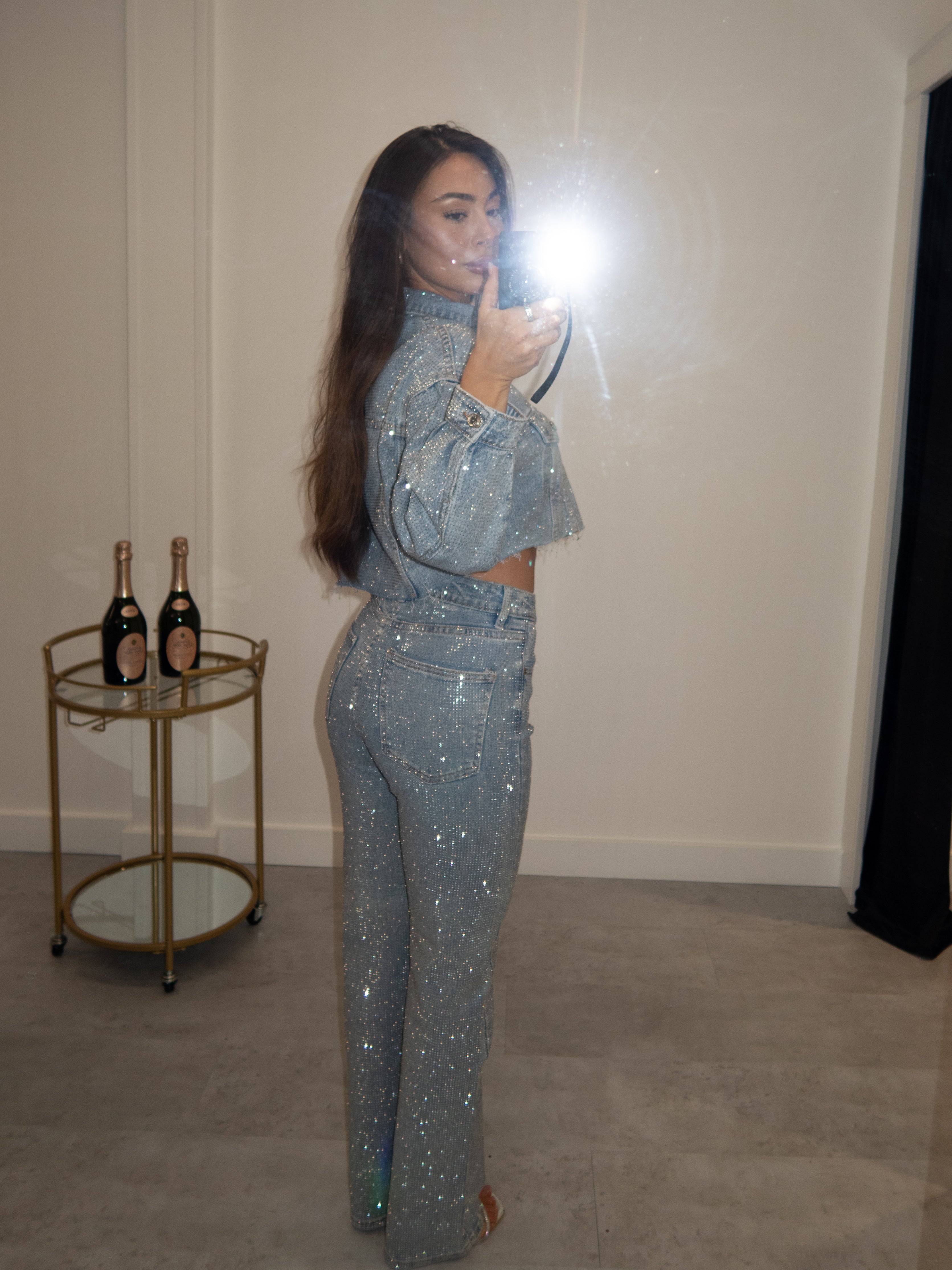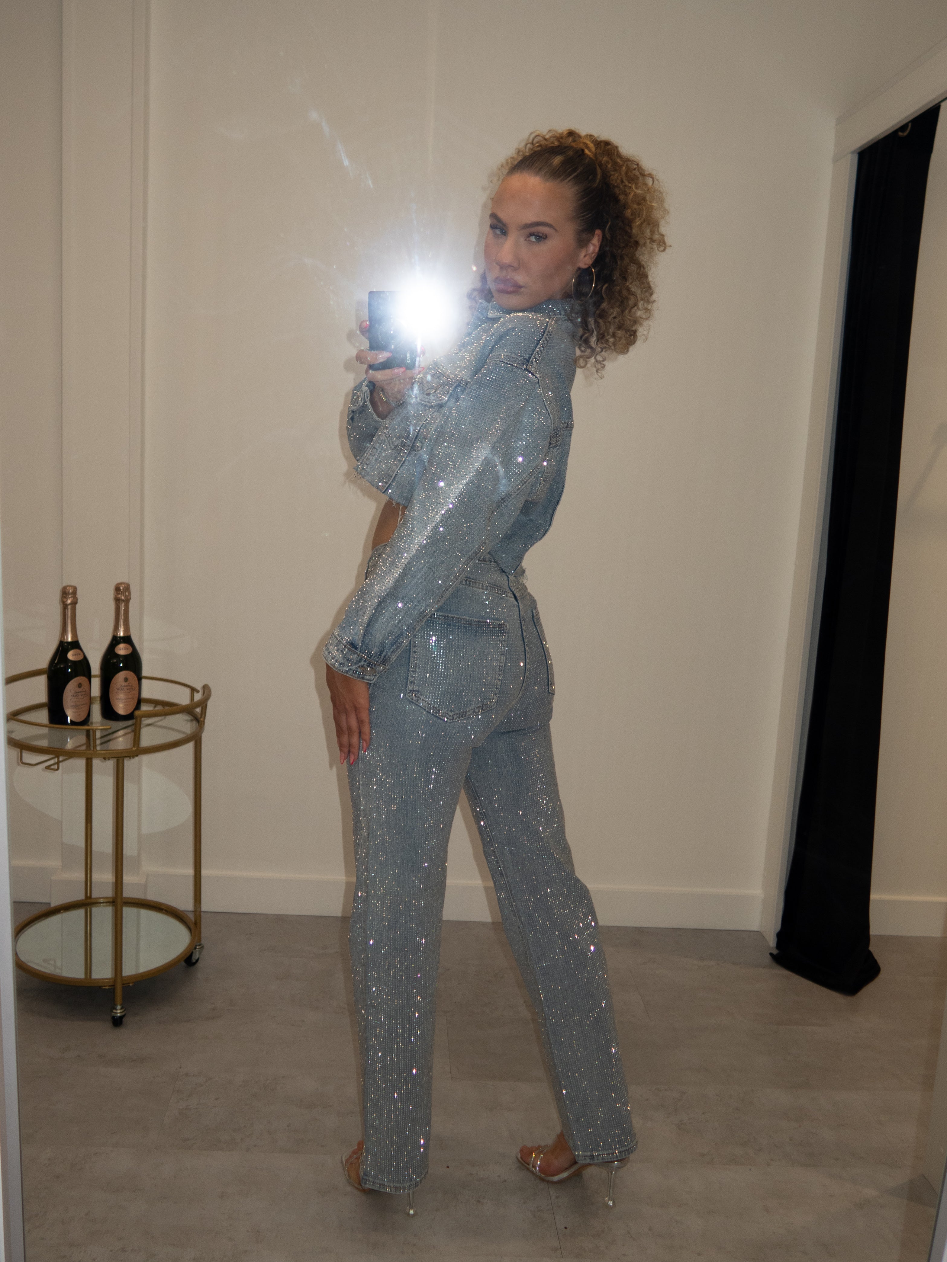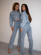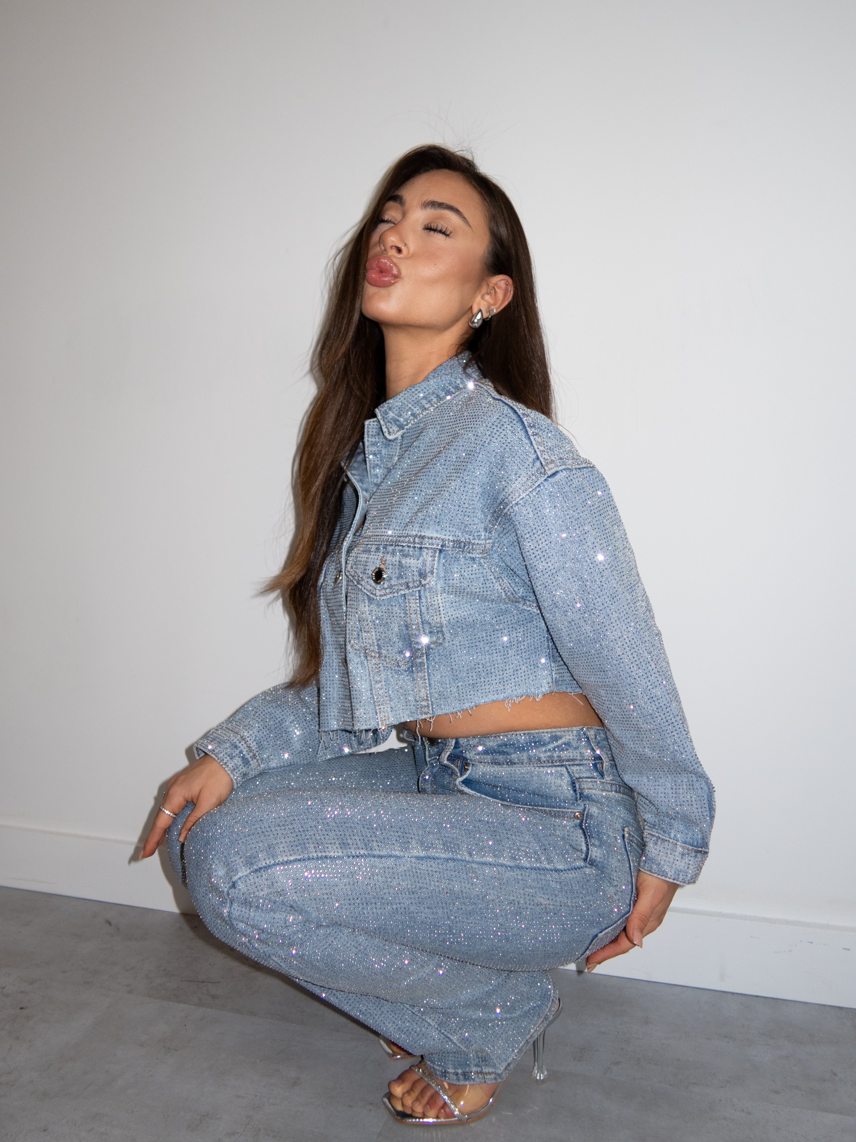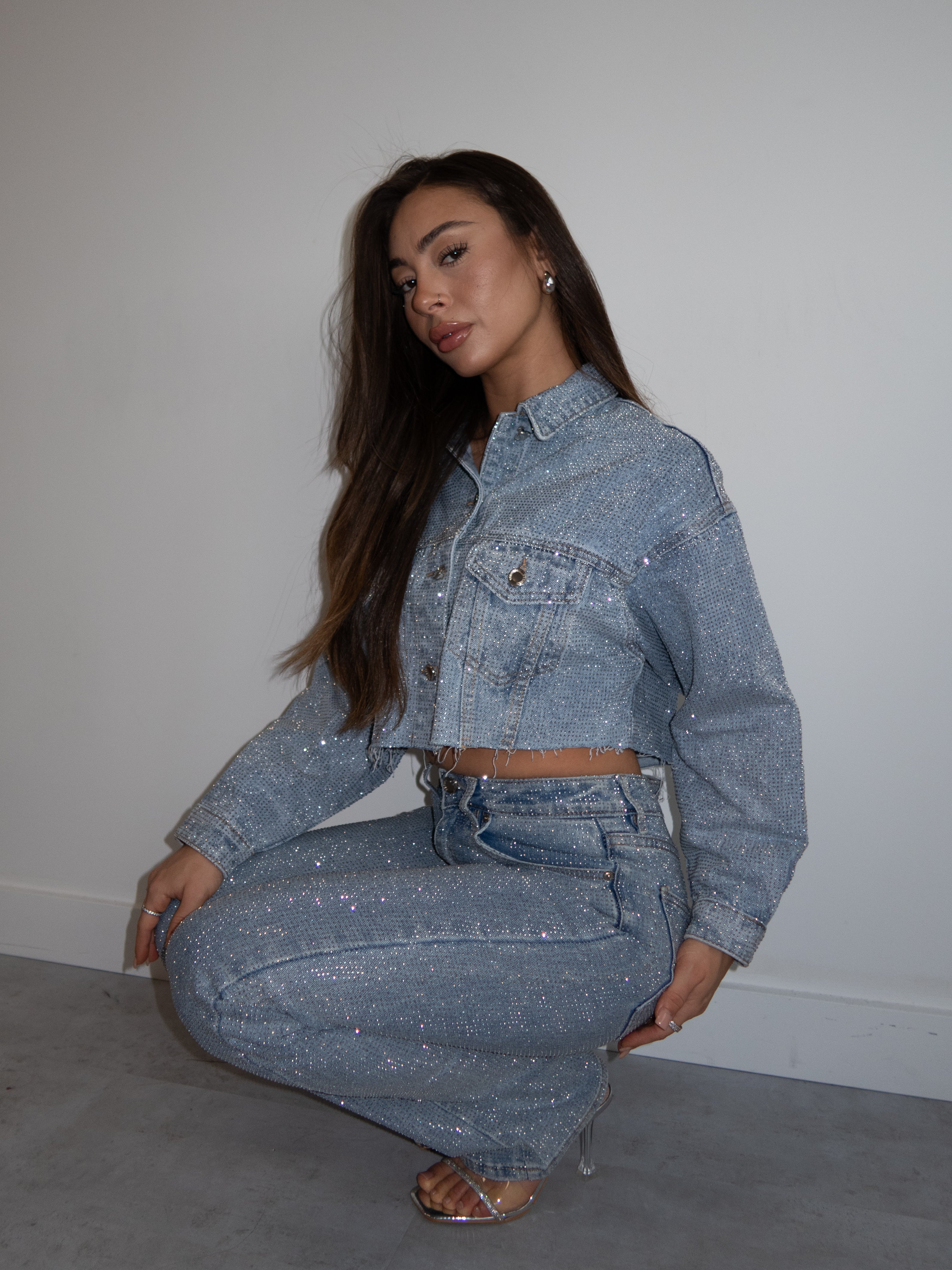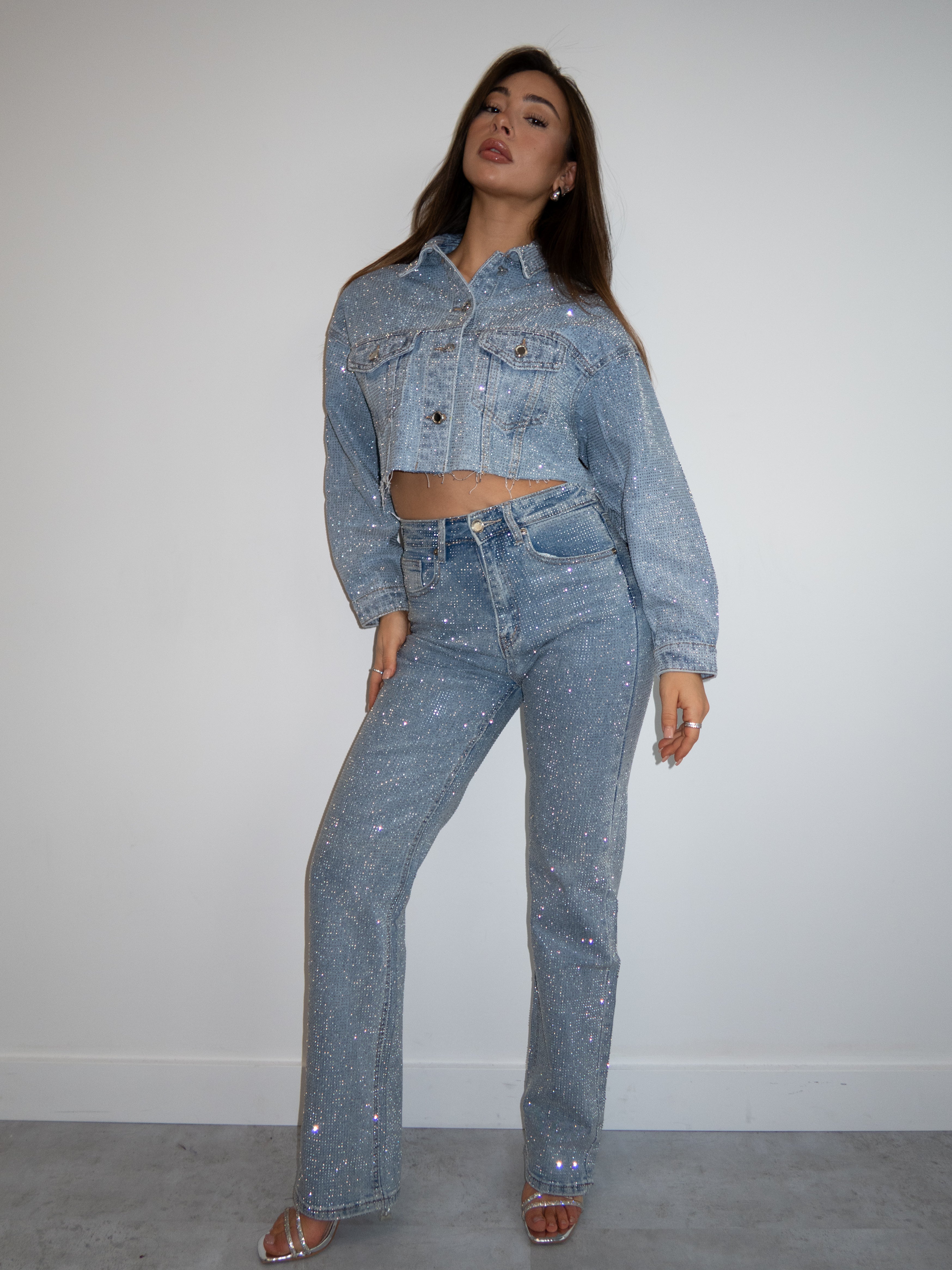 Hoe geweldig is onze all over rhinestones jeans 2.0? Deze heeft ook een matchend jasje.