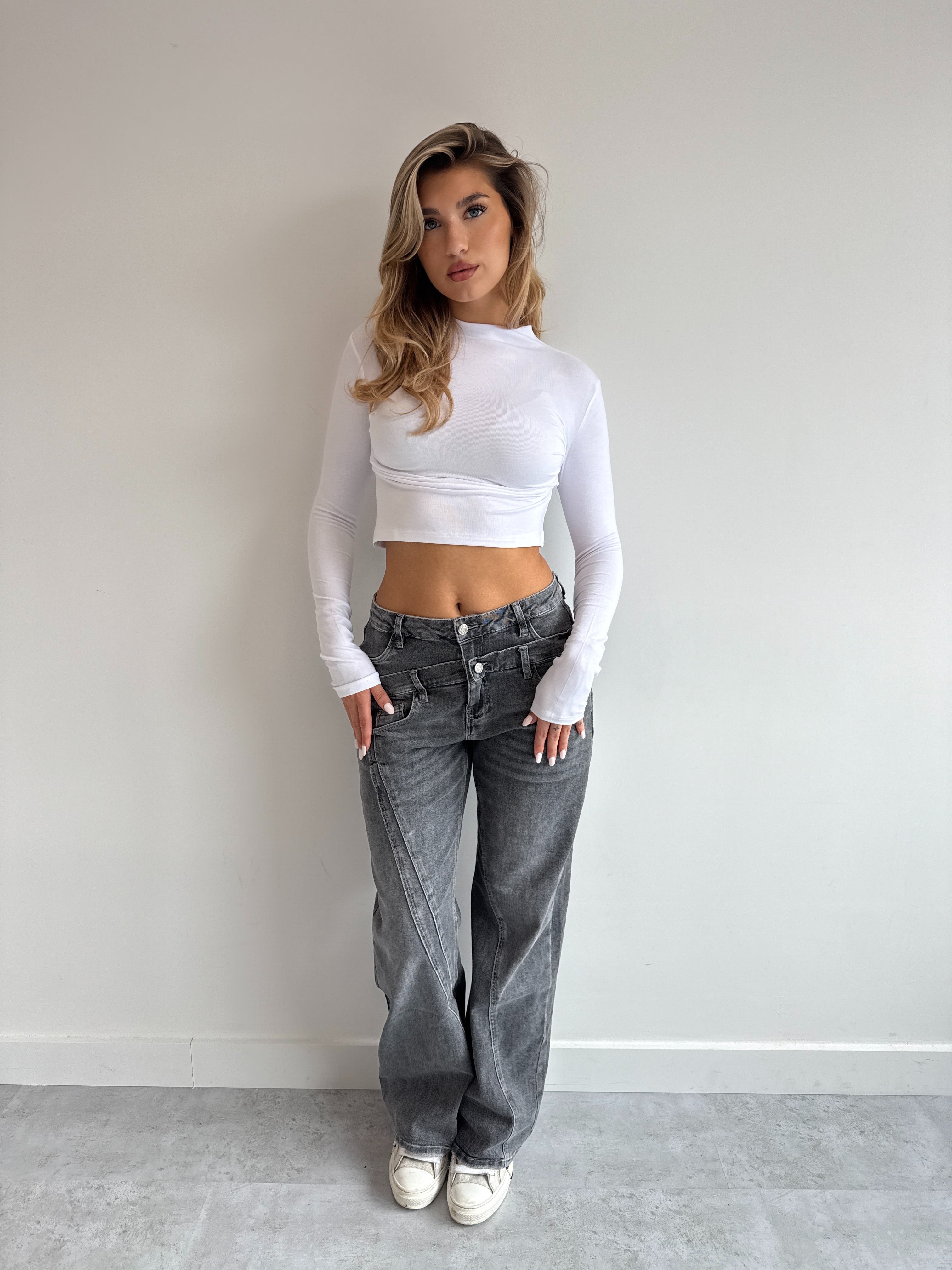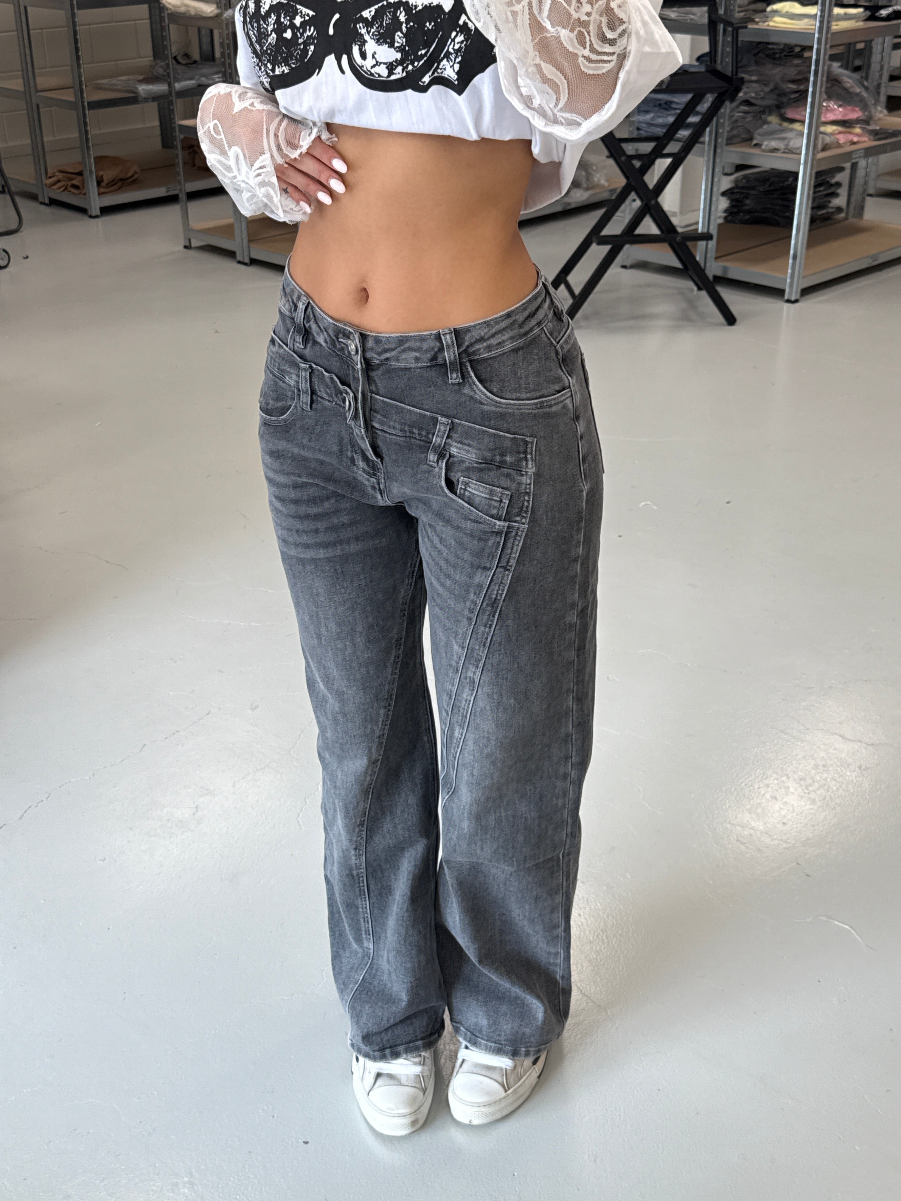 Hoe leuk is deze jeans met stretch en dubbele band?!