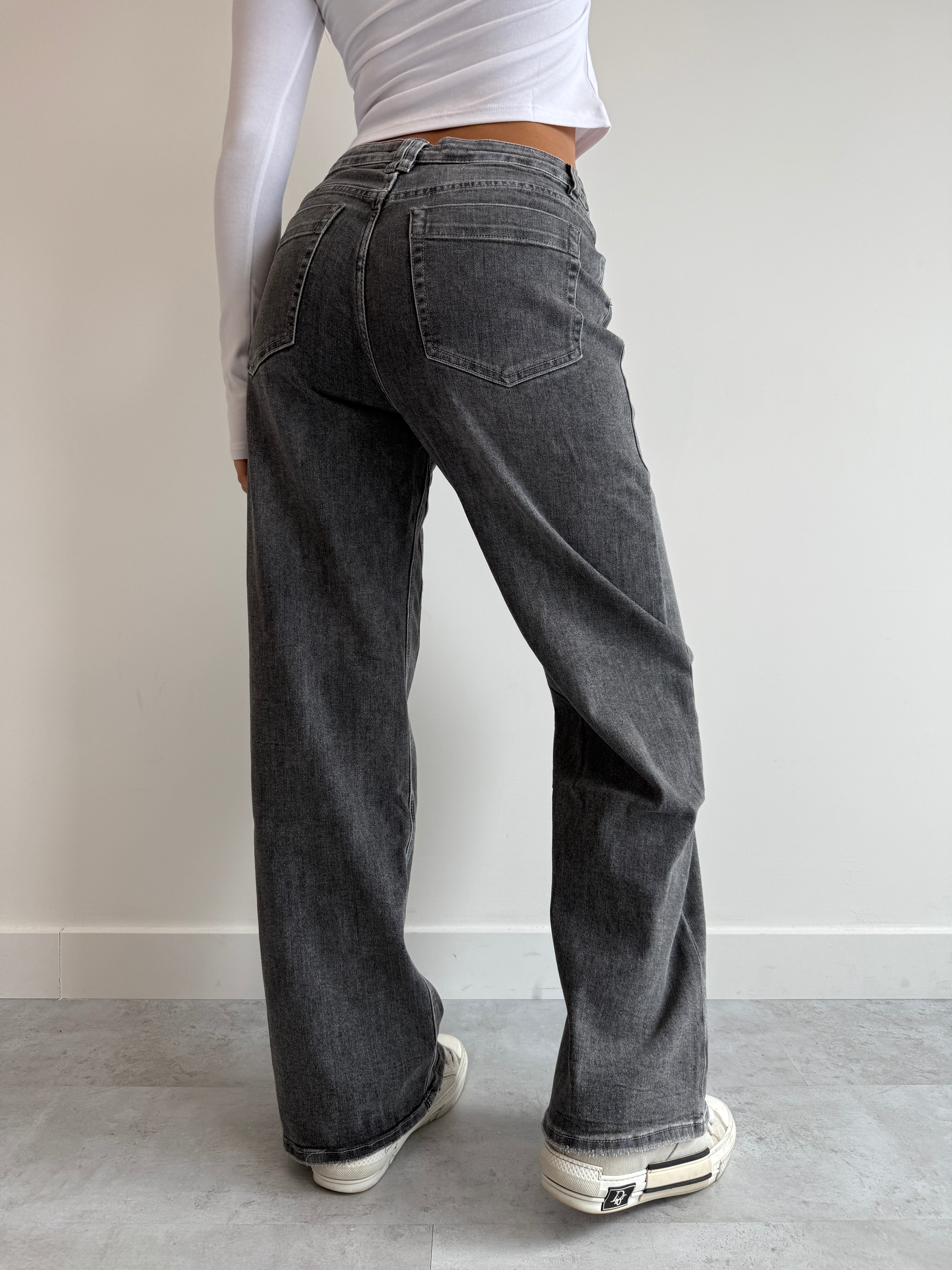 de jeans valt op maat. Het model is 175 en draagt maat L.