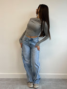 de jeans valt op maat. Het model is 163 en draagt maat XS/34.