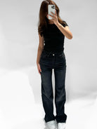 De jeans bevat stretch en valt goed op maat. Het model draagt hier maat S. De binnenbeen lengte van de broek is: 77CM.
