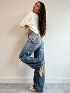 Hoe leuk is deze jeans met graffiti kettingen?!