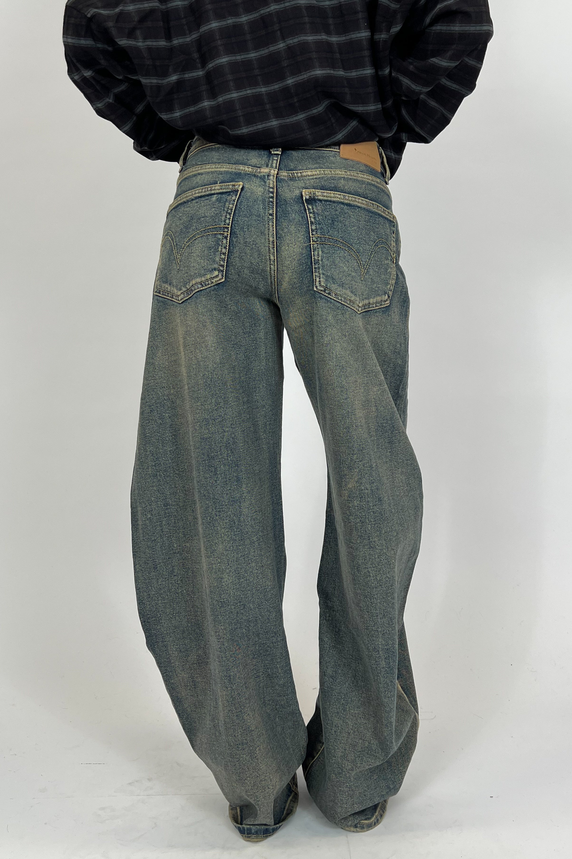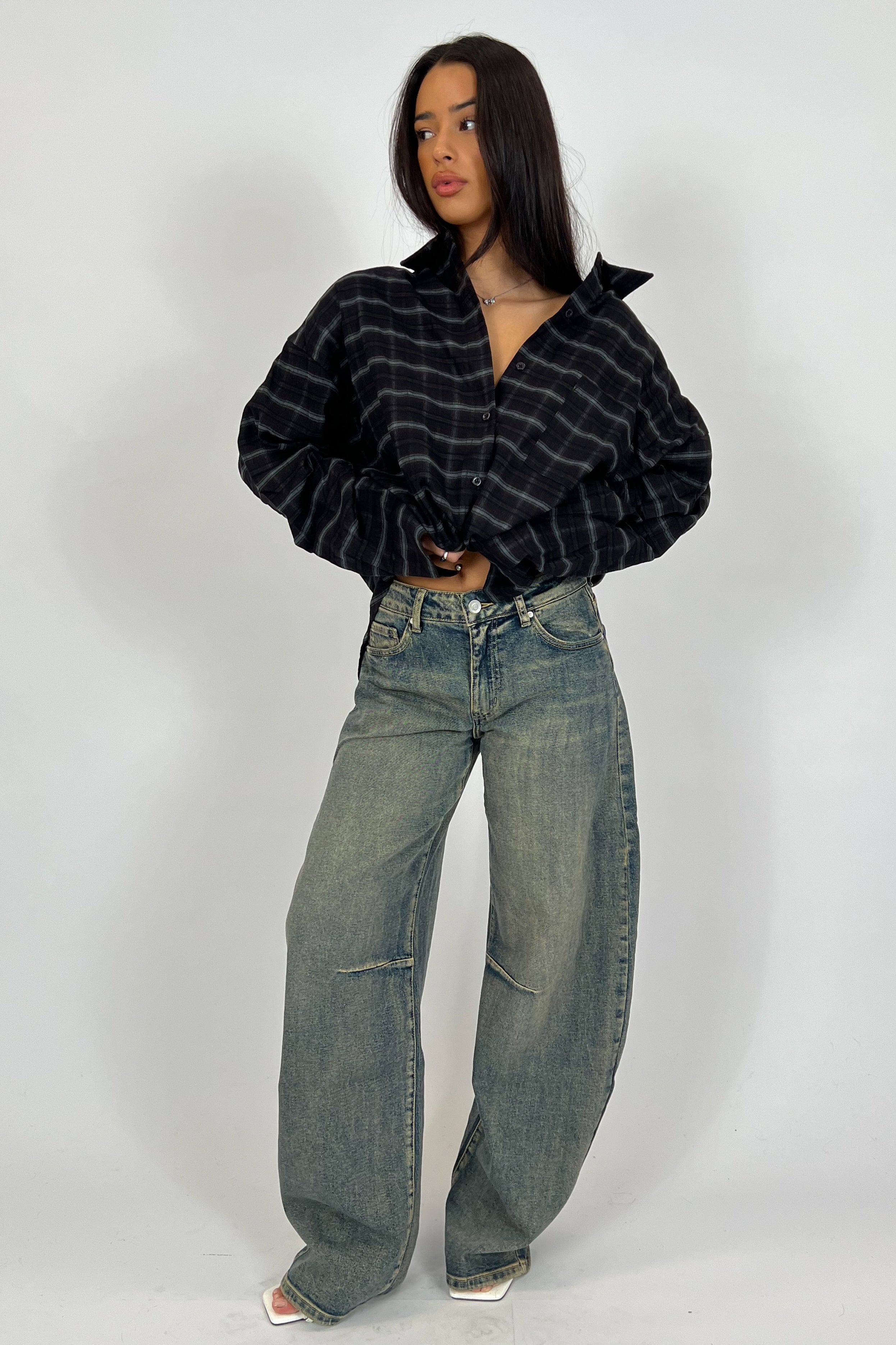 De blazer valt op maat. Het model is 160 en draagt maat S/M.