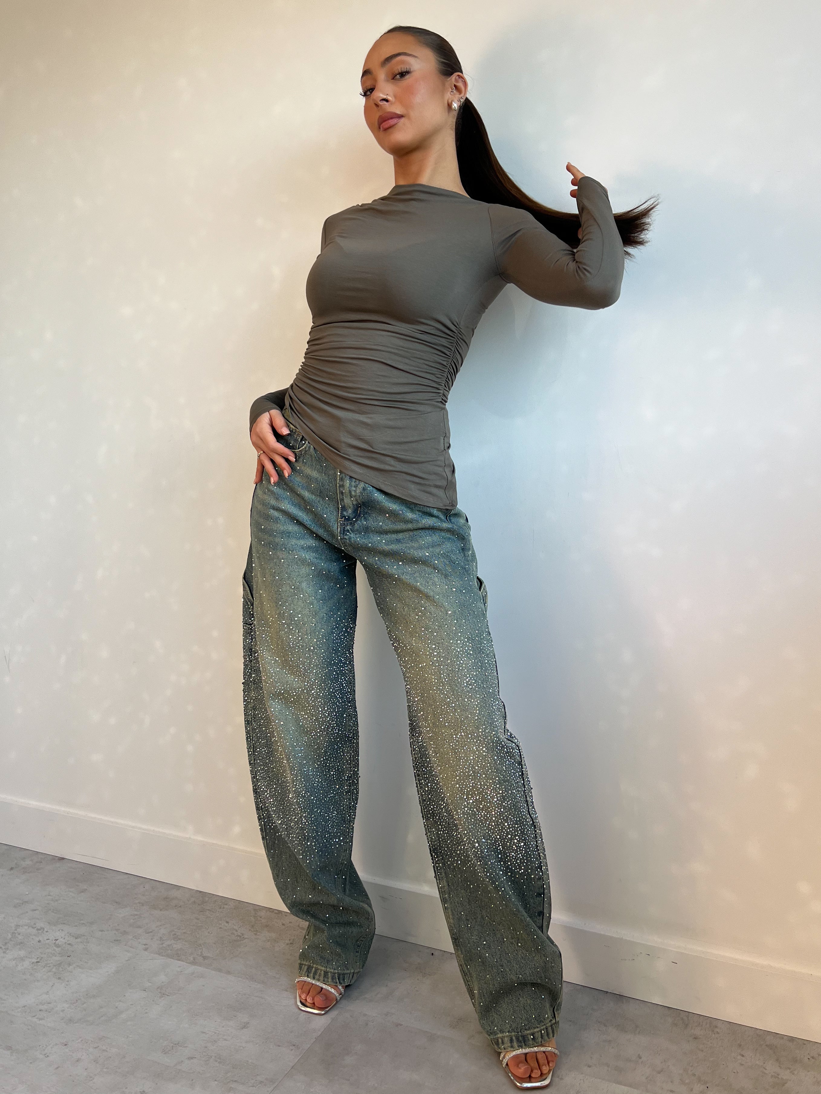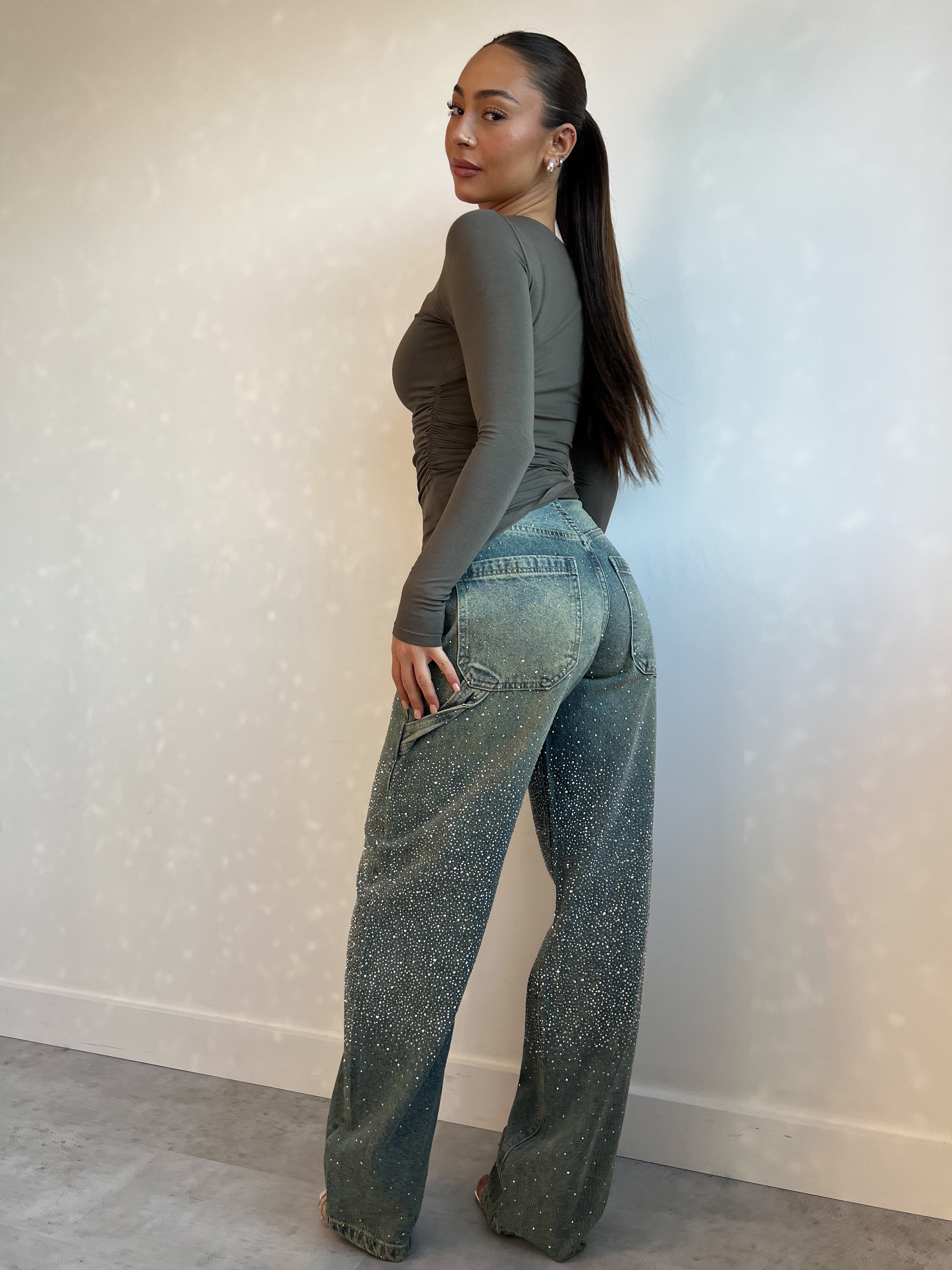 Hoe leuk is deze carpenter jeans met rhinestones?!