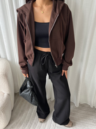 Hoe leuk is dit vest met capuchon?! Deze is gemaakt van een premium kwaliteit stof en matcht perfect met onze musthave straight leg jogger.