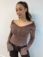 Schulterfreies Oberteil mit Reißverschluss in Braun